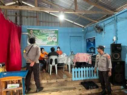 Personel Polsek Senayang Hadir Berikan Rasa Aman pada Pengobatan Gratis di Desa Tajur Biru
