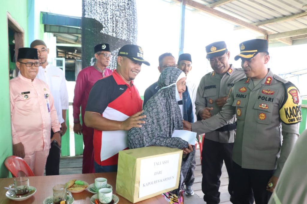 Selanjutnya Kapolres Karimun melaksanakan tali asih dan bantuan sosial langsung dengan ibu Misnem (80) tahun dan ibu Ratna (59) tahun di Jln. Sudirman, Kel. Tg. Berlian Kota, Kec. Kuta, Kab. Karimun.