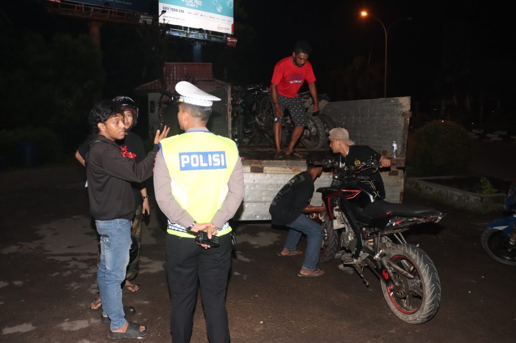 Dengan melakukan penilangan terhadap 106 Unit Kendaraan yang tidak menggunakan knalpot sesuai spesifikasi teknis, tidak menggunakan TNKB dan tidak dilengkapi surat-surat kendaraan.