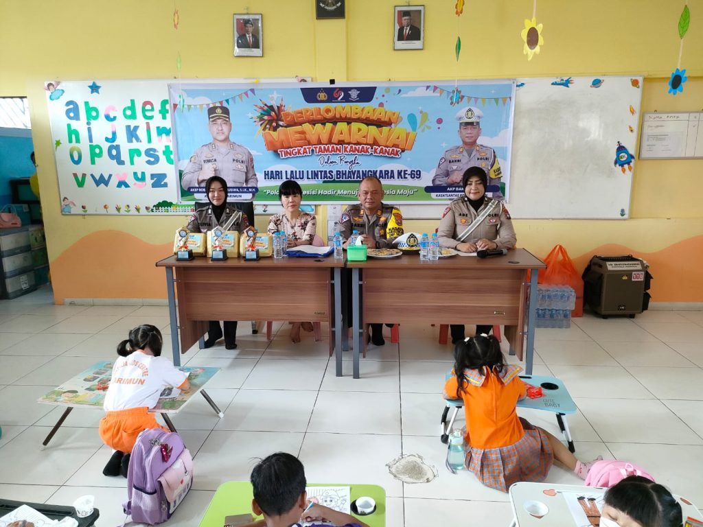 Dalam rangka memperingati Hari Lalu Lintas Bhayangkara Ke-69, Satlantas Polres Karimun menggelar Lomba Mewarnai Tingkat Taman Kanak-Kanak (TK) dengan tema “Polantas Presisi Hadir Menuju Indonesia Maju”, diikuti 5 Sekolah Taman Kanak – Kanak yang terdiri dari 5 orang anak dari setiap Sekolah, bertempat di Ruang Kelas TK Vidya Sasana. Rabu (12/9/2024).