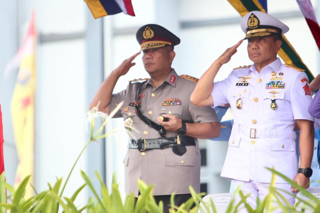 Tanjung Pinang – Kapolda Kepri Irjen. Pol. Asep Safrudin, S.I.K., M.H., Menghadiri Upacara Serah Terima Jabatan (Sertijab) Pangkoarmada I dan Pangkoarmada II yang dipimpin oleh Pangkoarmada RI Laksamana Madya TNI Dr. Denih Hendrata, S.E., M.M., CHRMP., yang bertempat di Markas Komando (Mako) Koarmada I, Tanjungpinang, Senin(17/3/2025).