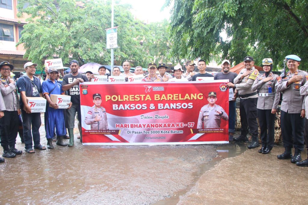 Kapolresta Barelang Kombes Pol Nugroho Tri N, SH, SIK, MH, menjelaskan hari ini kami Polresta Barelang Polda Kepri beserta Polsek Jajaran secara serentak melaksanakan Bakti Religi Baksos dan Bansos dalam rangka memperingati hari Bhayangkara ke 77 tahun 2023.