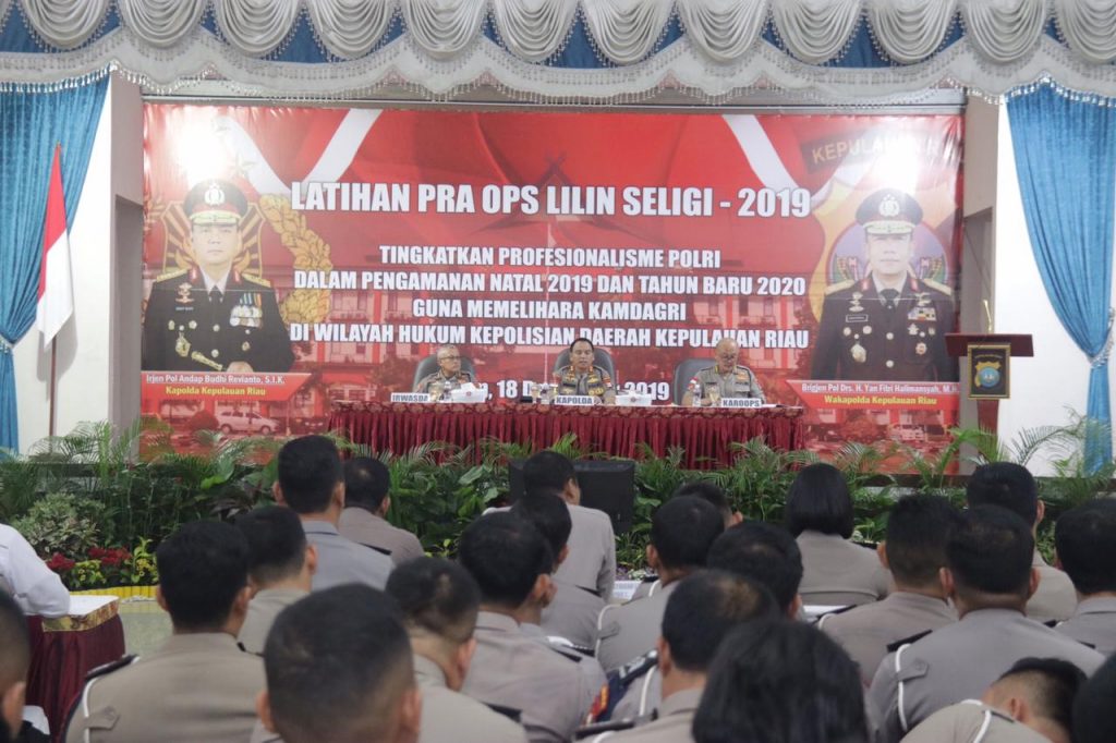 Pada hari Rabu 18 Desember 2019 Pukul 09.00 Wib, Kapolda kepri memimpin kegiatan Latpra Ops Seligi 2019 di Gedung Graha Lancang Kuning Polda Kepri.