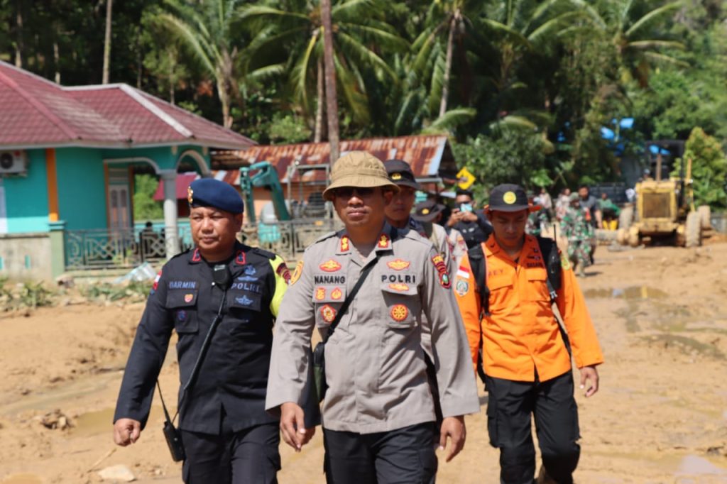 Kapolres Natuna AKBP Nanang Budi Santosa, S.I.K bersama Bupati Natuna, Dandim 0318 dan Kakansar meninjau langsung pelaksanaan pembersihan jalan dari timbunan material longsor.
