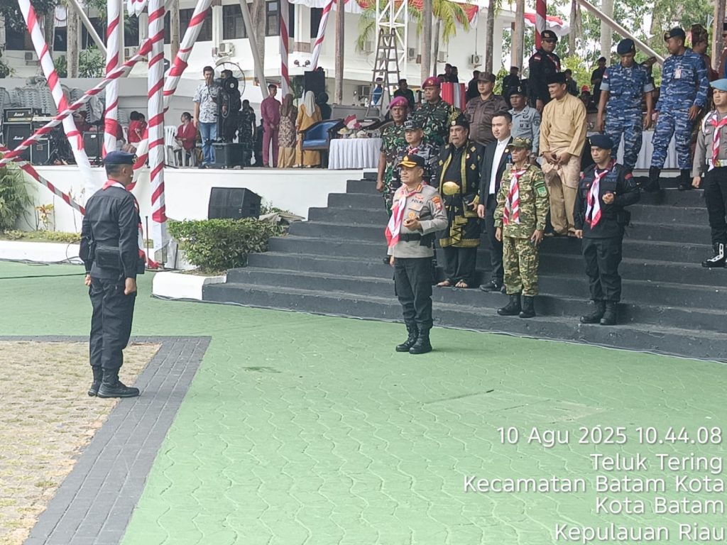Acara berlangsung khidmat dengan dihadiri oleh jajaran Forkopimda, di antaranya Wali Kota Batam Dr. Amsakar Achmad, S.Sos., M.Si., Dansat Brimob Polda Kepri Kombes Pol Arif Dody Suryawan, S.I.K., M.Si., perwakilan Danlantamal IV Batam, Danlanud Hang Nadim, Dandim 0316 Batam, anggota DPRD Kota Batam, tokoh adat Melayu, organisasi kepemudaan, hingga perwakilan instansi vertikal. Kehadiran para pemimpin daerah ini menjadi simbol kuatnya sinergi dalam menjaga persatuan bangsa.
