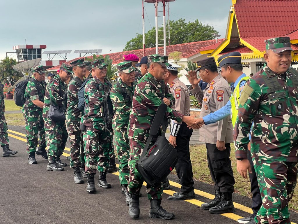 LINGGA – Kapolsek Dabo Singkep, AKP Zainur secara resmi menyambut kedatangan Wakil Komandan Komando Pembinaan Doktrin, Pendidikan, dan Latihan TNI (Wadankodiklat TNI), Marsda TNI Bambang Gunarto, S.T., M.M., M.Sc., dalam rangkaian kegiatan puncak latihan militer internasional Super Garuda Shield 2025 yang digelar di wilayah latihan TNI Angkatan Laut, Pantai Todak, Dabo Singkep, Kabupaten Lingga, Kepulauan Riau. Selasa (2/9/2025)