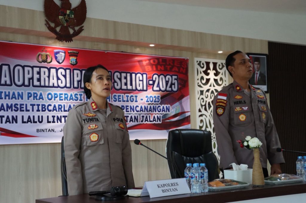 Bintan, Kepri – Kepolisian Resor Bintan menggelar Latihan Pra Operasi Seligi Tahun 2025 yang dilaksanakan di Ruang Aula Sar Polres Bintan pada Jumat (11/7/2025).