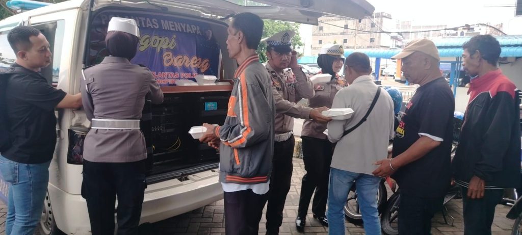 “Kita ngobrol santai, kita sediakan kopi dan sarapan untuk mereka, sambil mengingatkan agar utamakan keselamatan dijalan, mengingat mereka ojek pekerjaannya secara langsung terlibat di lalu lintas jalan raya,” tutur Kanit Kamsel.