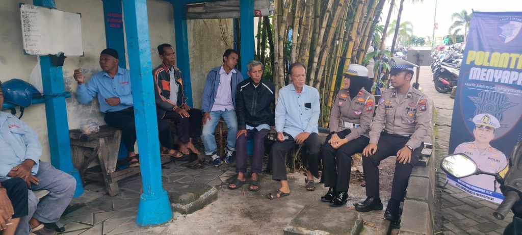 “Kita menyapa sambil mengobrol kepada ojek pangkalan pelabuhan untuk memberikan himbauan tertib berlalu lintas,” ujarnya.