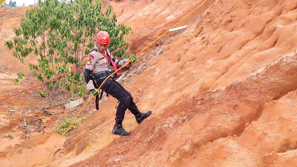Dalam kesempatan itu Ipda Mochammad Rizky Ramadhani, S.Tr.K., selaku instruktur pelatihan SAR darat ini langsung membimbing & menggiring para anggota Dit Samapta Polda Kepri menjalankan praktek turun tebing disekitaran lapangan Mapolda Kepri.