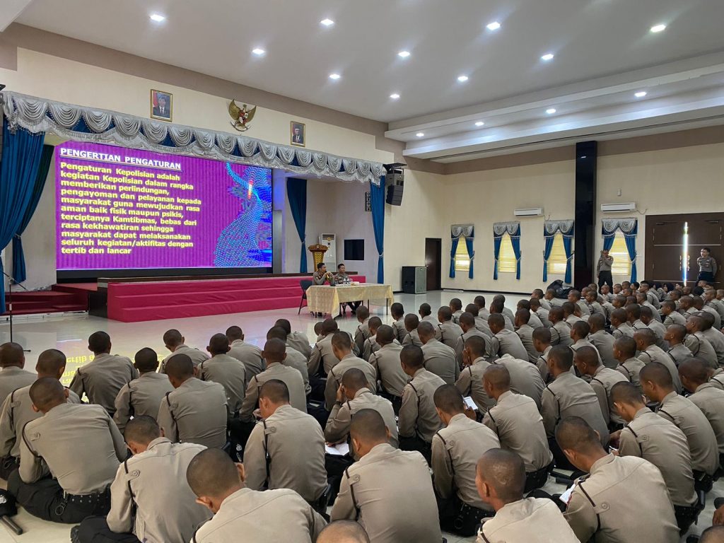 “Kita sebagai anggota Polri jangan malas membaca dan mempelajari Undang-Undang, Peraturan Kepolsian, Peraturan Kapolri, SOP, dan lainnya. Anggota Polri harus dapat mengidentifikasi dan menganalisis setiap permasalahan yang merupakan pelanggaran hukum untuk ditangani secara tepat, serta menghindari penyelesaian hukum dengan cara yang tidak benar. Dengan pengetahuan hukum yang mendalam, diharapkan anggota Polri dapat menjalankan tugasnya secara integritas dan berkeadilan, serta memberikan perlindungan hukum yang sejalan dengan prinsip-prinsip negara hukum,” tegas Irwasda Polda Kepri Kombes. Pol. Sri Satyatama, S.I.K., M.H., M.M., M.Han.