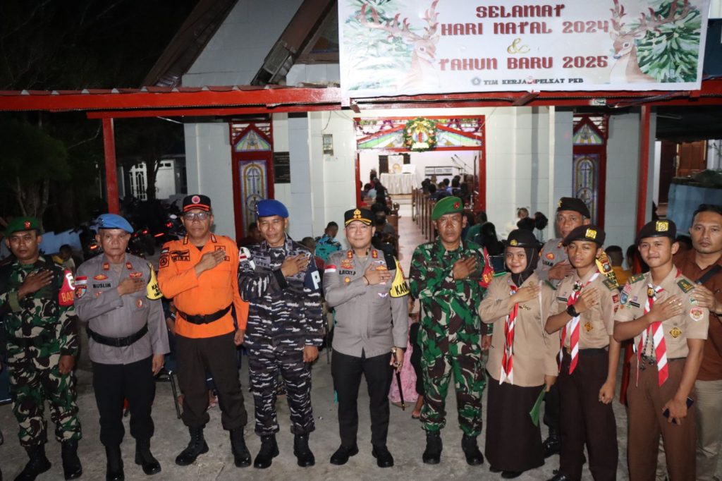 Polres Kepulauan Anambas – Pastikan Keamanan Misa malam Natal 2024, Kapolres Kepulauan Anambas, AKBP Raden Ricky Pratidiningrat, S.I.K., M.H., bersama Forkopimda Kabupaten Kepulauan Anambas melakukan pengecekan Gereja dan pos pengamanan terpadu yang ada di Tarempa, Kabupaten Kepulauan Anambas, Kepulauan Riau, Rabu ( 25/12/2024 ).