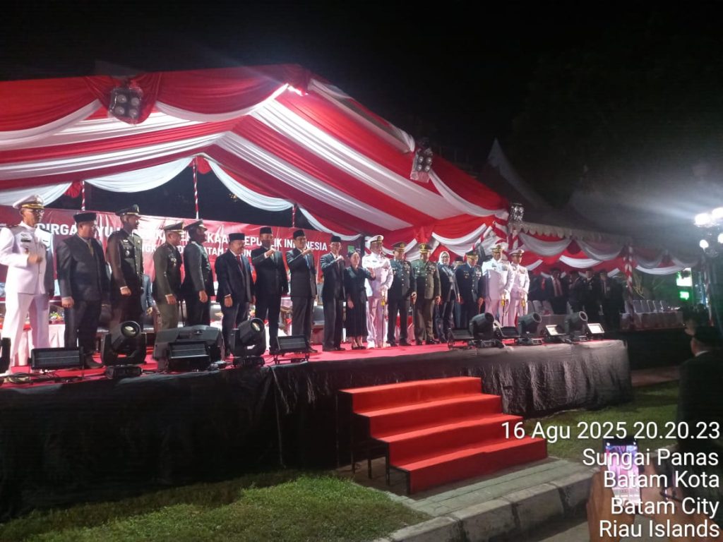 Polresta Barelang – Dalam rangka menyambut Hari Ulang Tahun (HUT) ke-80 Kemerdekaan Republik Indonesia, Pemerintah Kota Batam bersama Forkopimda menggelar Upacara Pelepasan dan Pawai Obor/Taptu bertempat di Taman Engku Hamidah, Kecamatan Batam Kota. Acara berlangsung khidmat dan penuh semangat kebangsaan dengan diikuti ratusan peserta dari berbagai unsur, termasuk TNI-Polri, instansi pemerintah, mahasiswa, dan pelajar. Sabtu malam (16/08/2025).