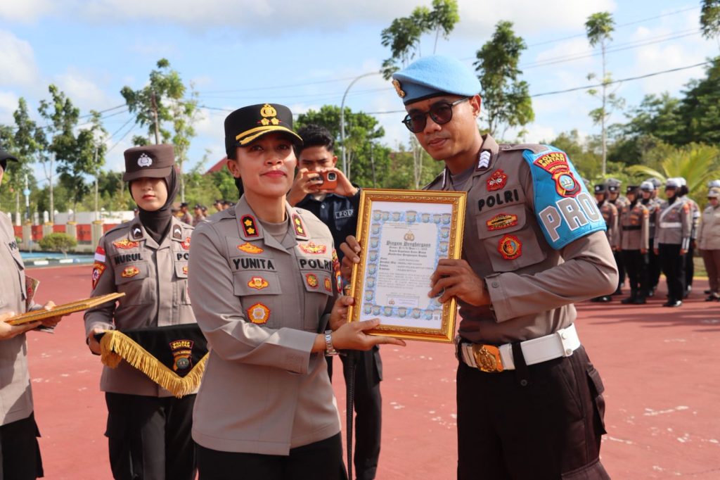 Bintan, Kepri – Polres Bintan kembali menoreh prestasi dalam bidang olahraga, Kapolres Bintan berikan penghargaan terhadap 2 personel Polres Bintan yang berhasil mendapatkan juara pada event Internasional pada Rabu (15/10/2025).
