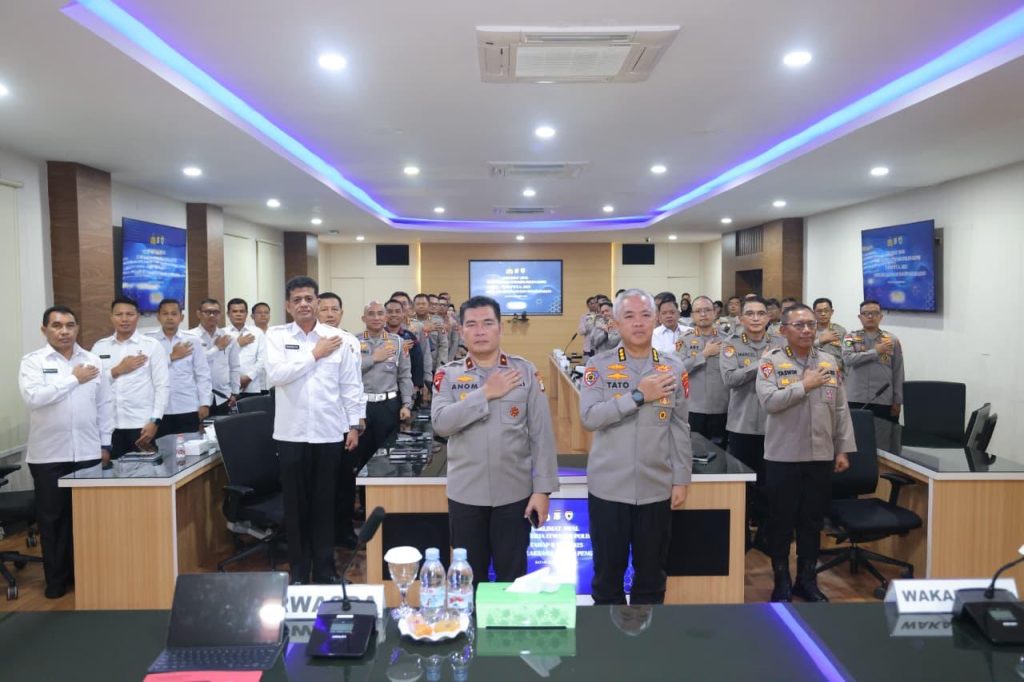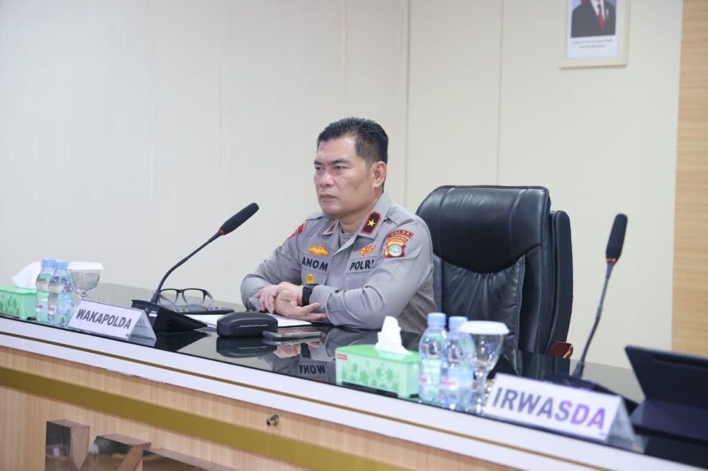 Kegiatan dipimpin oleh Wakapolda Kepri Brigjen Pol. Dr. Anom Wibowo, S.I.K., M.Si., dan dihadiri oleh Irwasda Polda Kepri Kombes. Pol. Tato Pamungkas Suyono, S.I.K., M.Si., para Pejabat Utama Polda Kepri, Wakapolresta Barelang, serta jajaran Polres/TA secara virtual.