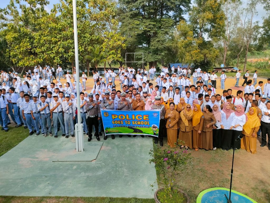 Satuan Lalu lintas Polres Karimun laksanakan kegiatan Police Goes To School dan selaku Inspektur Upacara (Irup) dengan Amanat Upacara tentang pentingnya pengetahuan berlalu lintas pada Masa lingkungan Remaja siswa/i SMKN 1 Karimun sekaligus melakukan penertiban kendaraan bermotor (knalpot, TNKB, dan kaca spion). Senin (30/9/2024).