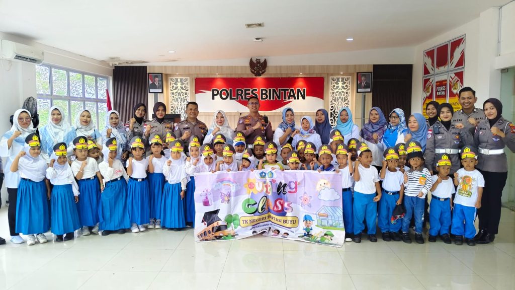 Bintan, Kepri – Sat Lantas Polres Bintan dengan penuh sukacita menerima kunjungan edukatif dari anak-anak TK Negri Bintan Buyu, didampingi guru dan wali murid, dalam program Polisi Sahabat Anak (PSA) yang berlangsung di Mapolres Bintan, Kamis (9/10/2025).