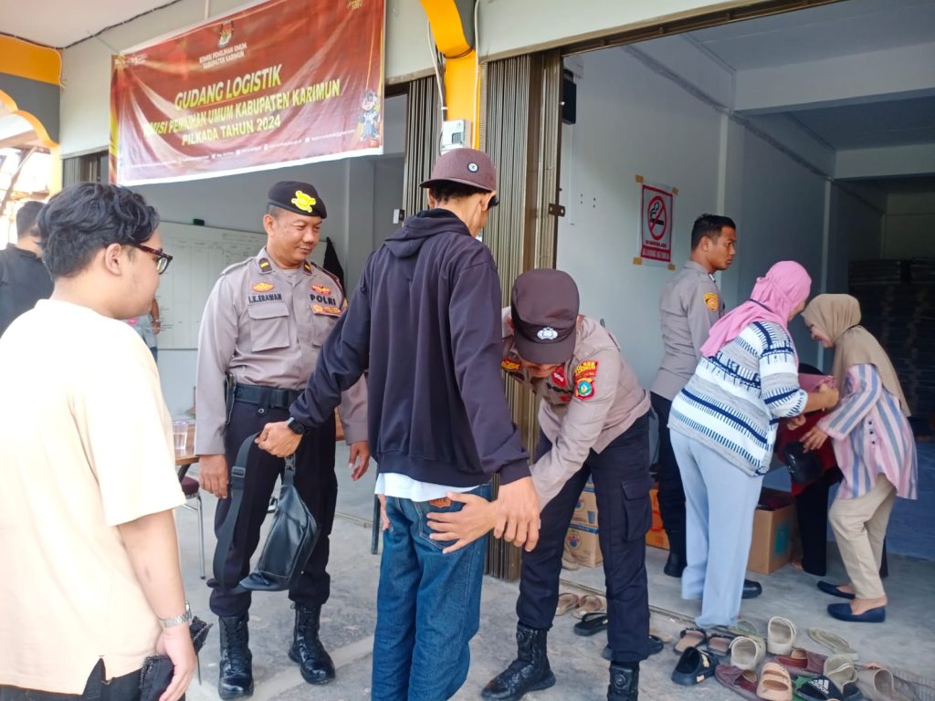 Personel Polres Karimun melaksanakan pengamanan ketat pada proses pelipatan surat suara Pilkada serentak 2024 dipimpin IPDA I Ketut Erawan selaku Perwira Pengendali, di gudang penyimpanan logistik Komisi Pemilihan Umum (KPU) Kabupaten Karimun pada Selasa (05/11/2024).