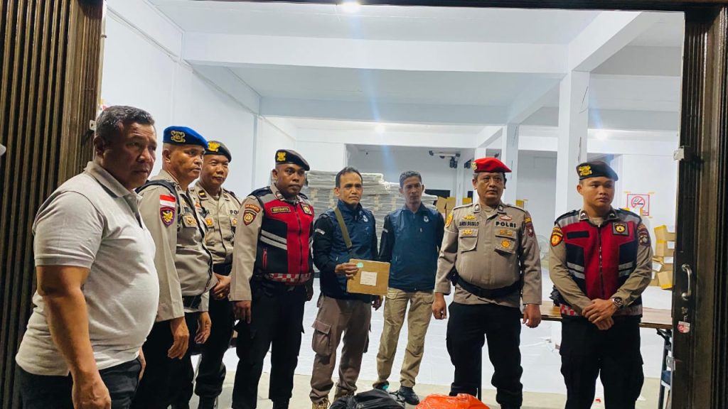 Surat suara Gubernur/Wakil Gubernur Kepri, Sampul surat suara, Sampul surat suara tidak digunakan, Sampul formulir C pendamping dan sampul kertas pembungkus C hasil 2024 Kab. Karimun di Gudang Logistik Pemilu Jl. Jenderal Sudirman Kec. Tebing Kantor KPU Kabupaten dikawal oleh Personil Sat Lantas Polres Karimun dan Sat Samapta Polres Karimun. Sekira pukul 19.45.Wib Rabu (13/11).