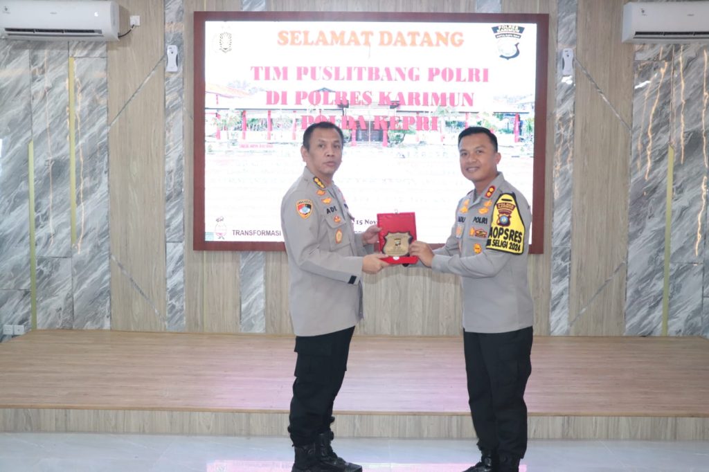 Kegiatan Puslitbang Polri ini dilaksanakan di gedung Catur Prasetya Polres Karimun yang di pimpin oleh Kombes Pol Ade Djadja Subagdja, S.I.K, M.H. selaku ketua tim, AKBP Ir. Dadang Sutrasno, Pembina Tk I Dr. Sarah Nuraini S, S.IP., M.Si dan Penata Tk I Verawati, SE. Kegiatan ini dihadiri Kapolres Karimun AKBP Fadli Agus, S.I.K., M.H., Ketua Bhayangkari Cabang Karimun Ny. Lya Fadli Agus, Kepala Dinas Kesbangpol, Kepala Kantor Kementrian Agama, Tokoh Masyarakat dan para tamu undangan.