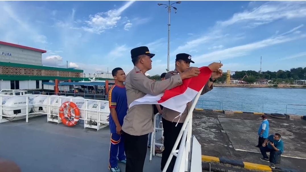 Polsek Kawasan Pelabuhan Sri Bintan Pura, Polresta Tanjungpinang, membagikan bendera merah putih, dalam rangka menyambut hari kemerdekaan Republik Indonesia yang ke-80 tahun.