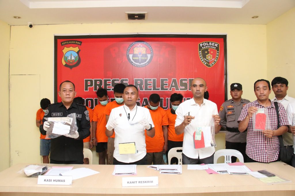 Konferensi pers tersebut dipimpin oleh Kapolsek Sagulung Iptu Rohandi Parlindungan Tambunan, S.I.P., M.A.P. yang diwakili Kanit Reskrim Polsek Sagulung Iptu Anwar Aris, S.H didampingi Kasihumas Polresta Barelang Iptu Budi Santosa, SH, dan Banit Sat Reskrim Polsek Sagulung Bripka Ali Asrim Harahap.