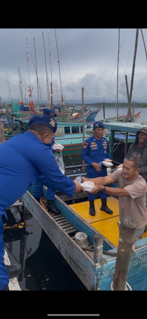 ‎Dalam kegiatan ini, sebanyak 30 kotak nasi dibagikan secara langsung kepada nelayan yang sedang bersiap melaut maupun yang baru kembali dari laut. Selain pembagian makanan, personel juga menyampaikan himbauan terkait keselamatan melaut, pentingnya menjaga keamanan dan ketertiban di wilayah perairan, serta mengajak nelayan untuk turut menjadi mitra Polri dalam menjaga kamtibmas.