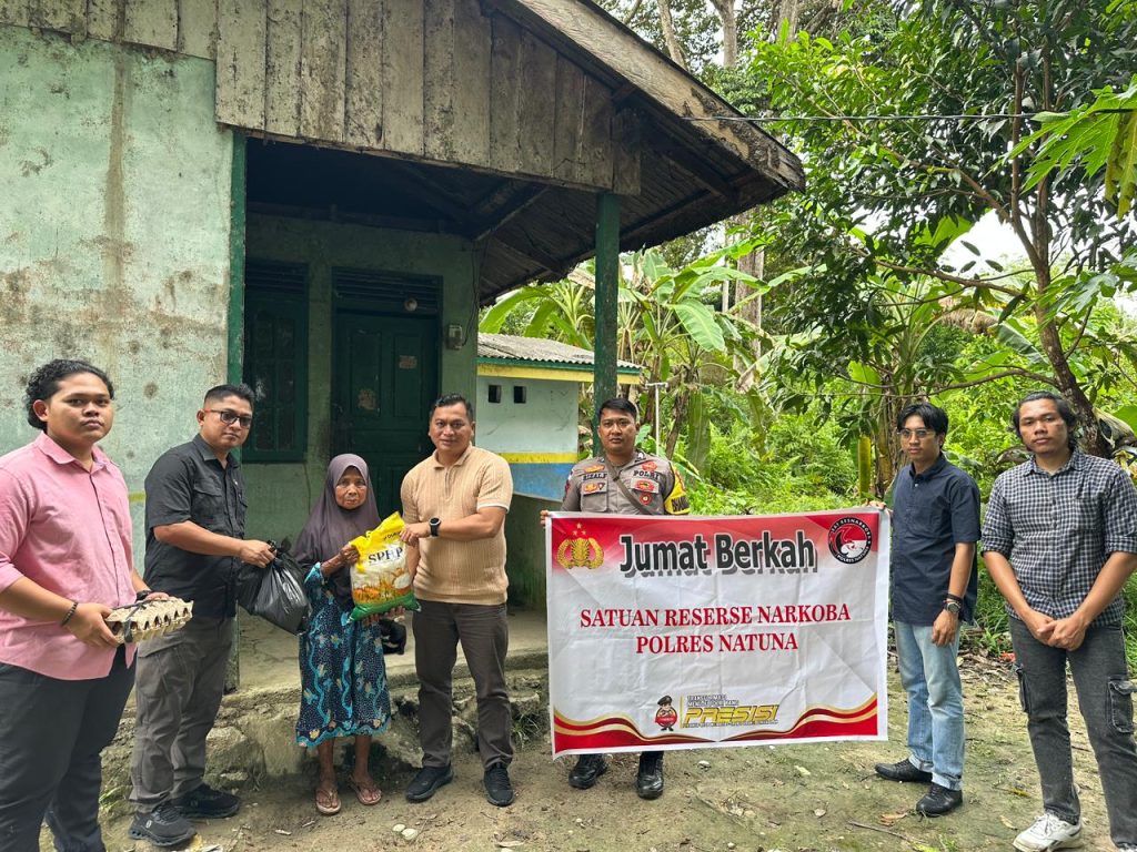 “Kegiatan Jumat Berkah ini merupakan bentuk kepedulian kami terhadap masyarakat, sekaligus upaya memperkuat hubungan emosional antara Polri dan warga. Kami ingin hadir tidak hanya sebagai penegak hukum, tetapi juga sebagai sahabat dan pelindung masyarakat,” ujar IPTU Ronald Hasudungan Simanjuntak, S.H., M.H., Kasat Resnarkoba Polres Natuna.