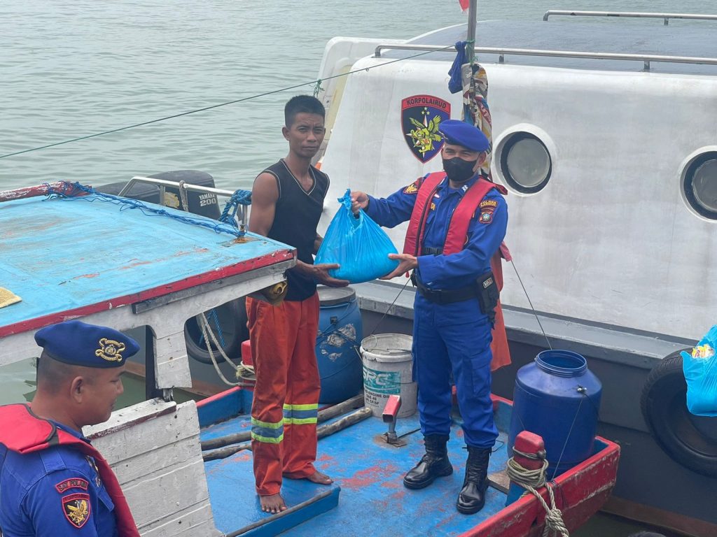 Karimun – Satuan Polisi Air dan Udara (Satpolairud) Polres Karimun kembali lagi menyalurkan bantuan sosial (bansos) kepada nelayan yang terdampak penyesuaian harga BBM, untuk kali ini di salurkan di pangkalan nelayan belakang Gabion di Perairan Selat Gelam Karimun, Kamis (8/9/2022).