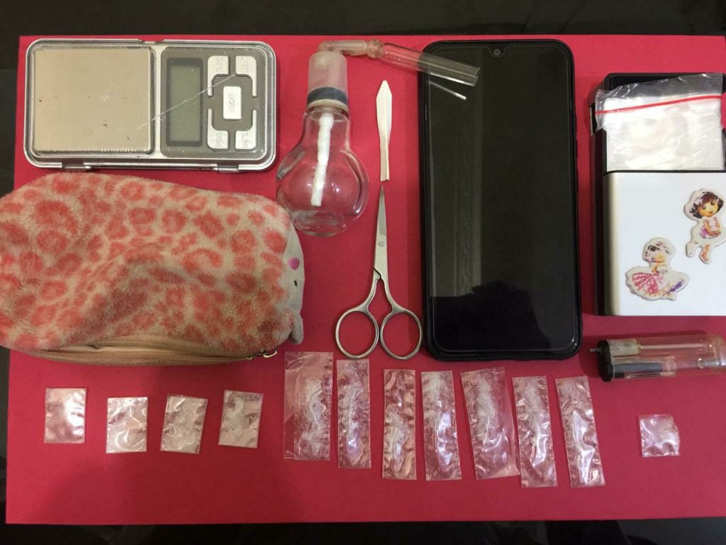 Saat dilakukan penggeledahan yg disaksikan Ketua RT setempat, Anggota Sat Resnarkoba berhasil menemukan 12 (dua belas) Paket Sabu dengan total berat kotor 3,9 gram, 1 (satu) Unit Timbangan Digital warna Silver, Seperangkat Alat Hisab Sabu/Bong, 1 (satu) Bundle Plastik bening, 1 (satu) Buah Gunting Stainless warna Silver, 1 (satu) Hp merk Vivo dan 1 (satu) buah kotak warna Silver yg digunakan untuk menyimpan sabu.
