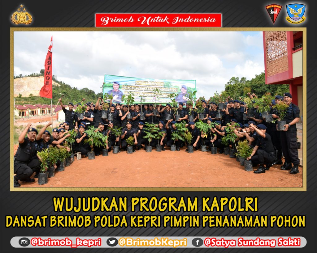 Dalam mewujudkan program Kapolri “Polri Peduli Penghijauan” Dansat Brimob Polda Kepri Kombes Pol Mohamad Rendra Salipu,S.I.K.,M.Si. pimpin langsung kegiatan penanam ratusan anak Pohon di Lingkungan Satbrimob Polda Kepri, Sabtu (4/1/2020).